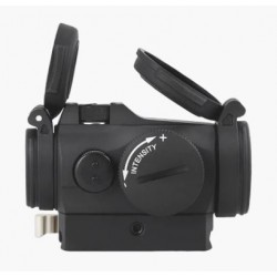 L’optique MICRO T-2 est équipée de caches rabattables. Le cache avant est opaque et celui de l’arrière transparent pour permettre à l’utilisateur de tirer en gardant les deux yeux ouverts tandis que les caches sont fermés dans les situations d’urgence. Le boîtier du viseur est en alliage d’aluminium, anodisation dure, pour une protection optimale des composants électroniques et optiques dans tous les types de conditions environnementales.