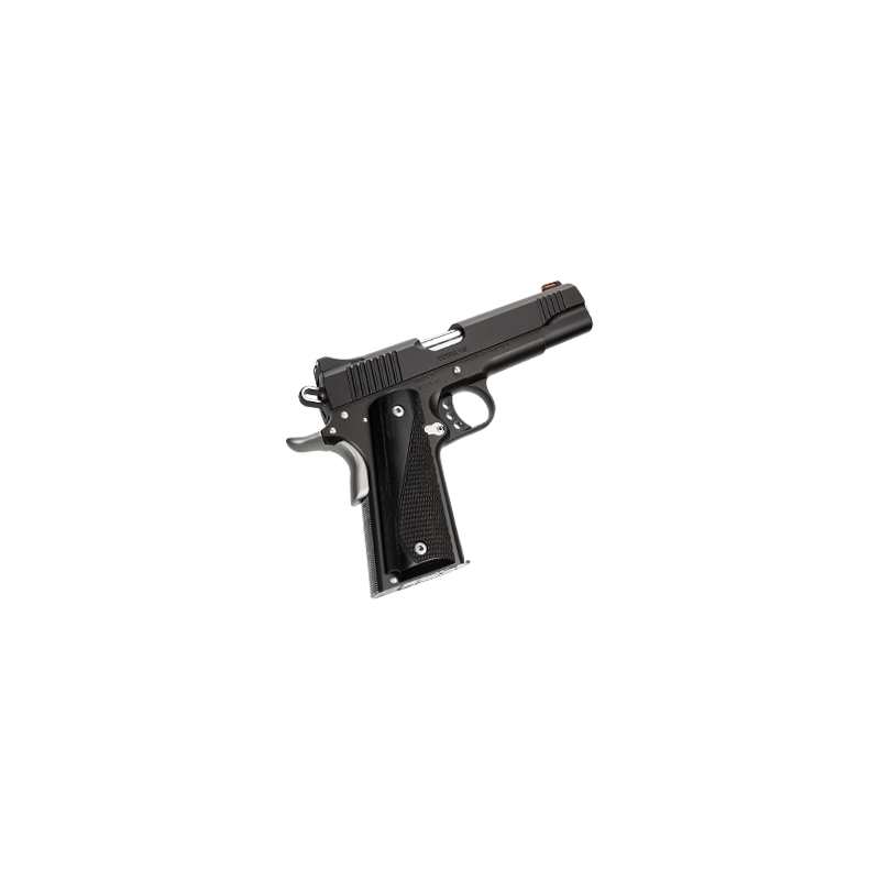 Le CUSTOM LW est une édition spéciale 1911 disponible pour une durée limitée, équipée d'une hausse à point blanc et d'un guidon à fibre optique rouge, d'une carcasse en aluminium allégée, de petites pièces contrastées en acier inoxydable et de superbes plaquettes de crosse en laminé gris avec surface quadrillée pour une prise en main sécurisée, formant un ensemble unique. Canon en acier inoxydable match grade avec un chargeur de 8 coups (.45 ACP) ou un chargeur de 9 coups (9 mm). Disponible en calibres .45 ACP et 9 mm.