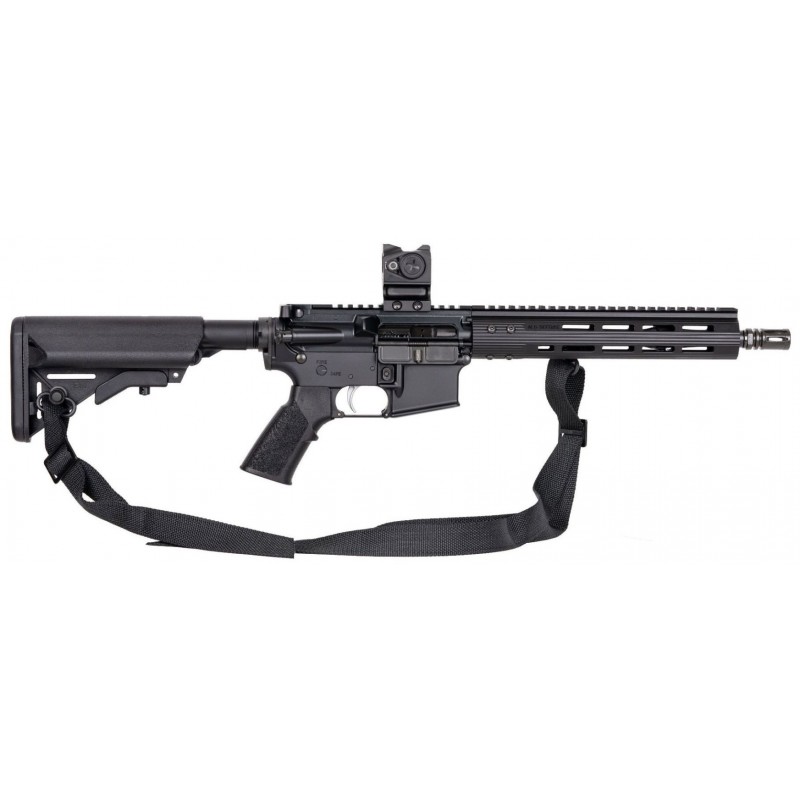 El Jefe est livré avec une bretelle Mil-Spec de M4 et une paire d'attache bretelle QD en acier, ainsi qu'un viseur électronique Warner et Swasey à point rouge de 3 MOA de conception américaine avec visées de secours intégrées, il n'est donc pas nécessaire d'en acquérir séparément. Le viseur est équipé d'un solide montage rehaussé, fixé par 2 vis Torx surdimensionnées pour assurer le maintien du zérotage en cas de chocs.
