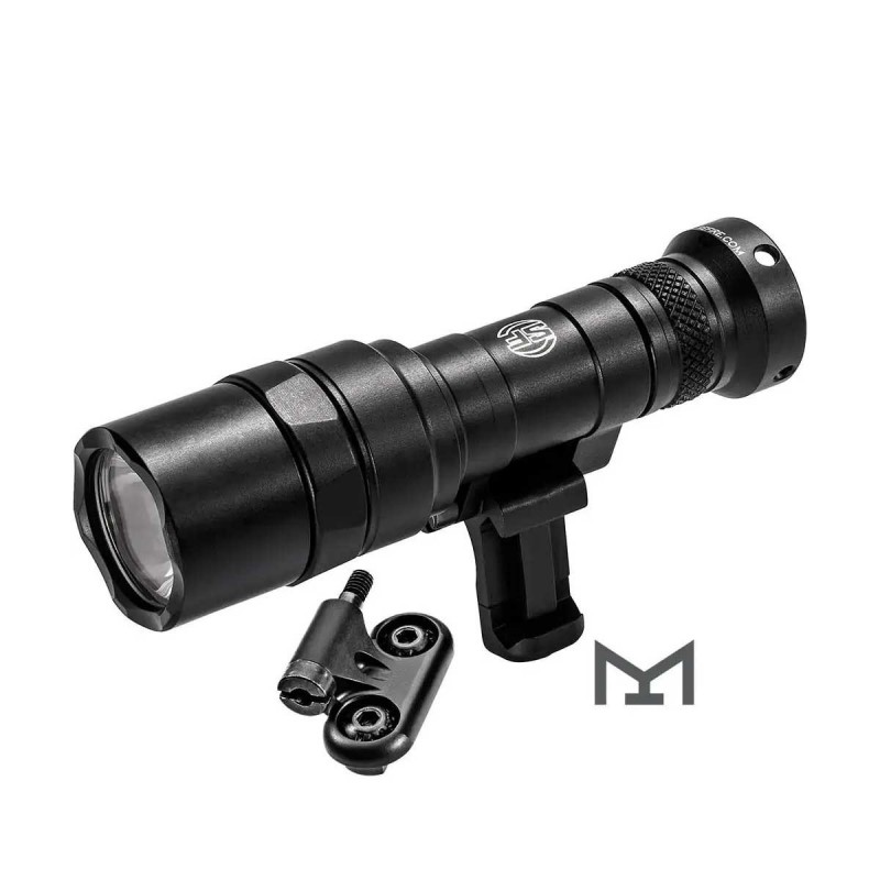 La lampe pour arme M340C Mini Scout Light® PRO se fixe sur un rail M-Lok avec un système de bascule profilé. Elle offre un mode d'éclairage LED puissant de 500 lumens. Elle produit un faisceau étroit adapté aux applications de courtes à moyenne portée avec un éclairage périphérique suffisant préconisant pour une utilisation tactique jusqu'à 175 mètres grâce au réflecteur TIR. Elle est livrée avec le montage M75 et un culot Z68 avec bouton poussoir.