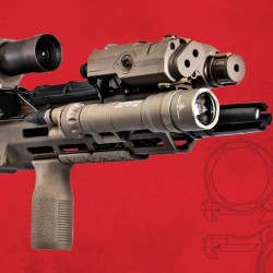 La lampe pour arme M140A Micro Scout Light® PRO se fixe sur un rail M-Lok ou Picatinny avec un système de bascule profilé. C'est la lampe la plus compacte tout en offrant un mode d'éclairage LED puissant de 300 lumens. Elle produit un faisceau polyvalent idéal pour éclairage de proximité en intérieur jusqu'à 65 m grâce au réflecteur Parabolic. Elle est livrée avec les montages Picatinny et M-LOK.